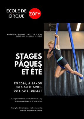 - Les inscriptions pour le stage de Pâques c'est maintenant ! Un rabais de 15 CHF est offert sur les stages pour les élèves inscrits à l'année