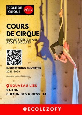 Fondée il y a plus de 20 ans, l’École de cirque Zôfy est une référence dans l’enseignement des arts du cirque en Suisse et en Europe. Située à Saxon, elle accueille enfants, adolescents et adultes dans un esprit de bienveillance, de partage et de créativité. Notre pédagogie repose sur un apprentissage progressif mêlant jeu, expression corporelle, disciplines circassiennes et développement de la confiance en soi. Reconnue par la Fédération Suisse des Écoles de Cirque (FSEC) et la FEDEC, l’école transmet un cirque vivant et accessible à toutes et tous. Encadrés par des artistes-professeurs diplômés, nos élèves évoluent dans un espace sécurisé et inspirant, propice à l’épanouissement personnel et artistique.